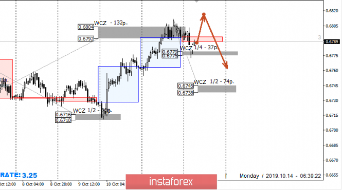 The reversal model will become relevant if the closing of today's US session occurs below the Weekly Control Zone 1/4 0.6779-0.6775. This will allow considering corrective sales to WCZ 1/2 0.6745-0.6738. The test of which will determine the further priority for the second half of the month.