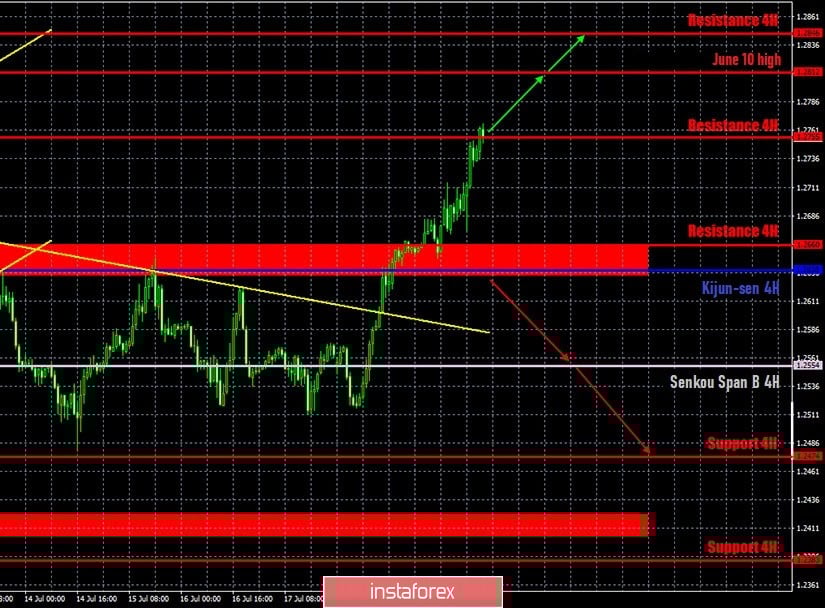 The fundamental background for the GBP/USD pair seems to have completely shifted towards the coronavirus theme. In recent weeks, we have repeatedly concluded that the US dollar is falling against its main competitors, solely due to the difficult epidemiological situation in America, and, as a result, the almost complete inaction of the White House in countering the epidemic. We also noted that US President Donald Trump is concerned about his re-election prospects and the US economy, rather than the fact that the United States is ranked first in the world in terms of the number of diseases and deaths from the "Chinese virus". From our point of view, all this played a significant role in forming a low demand for the dollar. At the beginning of this week, data came from the UK that scientists at Oxford University made a breakthrough in creating a vaccine against the coronavirus. The pound sterling jumped with new forces following this information. Thus, new information on the coronavirus from Britain and the United States could once again affect the mood of the market. Especially since Trump resumes briefings on the coronavirus, so we can get a new batch of funny comments in the near future. As for the average economic data, they don't exist. There is no news on the most exciting Brexit topic for the GBP/USD pair. The end of July has already arrived, and British Prime Minister Boris Johnson is not even going to Brussels yet. However, in recent days, EU leaders have been busy with the EU summit. So in the coming week, we are still waiting for information from Johnson in the capital of Belgium.