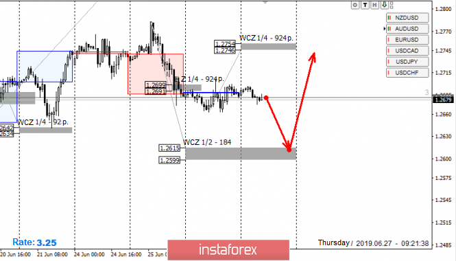 গত সপ্তাহে ঊর্ধ্বমুখী প্রবণতা ইমপ্লাসিভ ছিলো, কিন্তু চলতি সপ্তাহে "ফলস টেস্ট" প্যাটার্ন তৈরি হয়েছে। এটা বিক্রয়ে কাজে লেগেছে। প্রথম নিম্নমুখী লক্ষ্যমাত্রা 1.2615-1.2599 এর 1/2 WCZ। উক্ত লেভেল স্পর্শ করার উপর সম্পূর্ণ ঊর্ধ্বমুখী প্রবণতার সিদ্ধান্ত নির্ভর করছে।