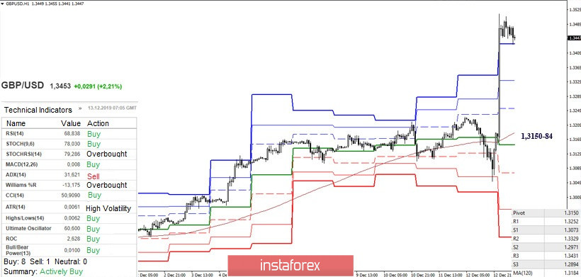 Today's performance has already broken many records, so closing the current day and week is unlikely to bring new shocks. Now, support can have more value. Today, key levels on H1 are located in the region of 1.3150-84 (weekly long-term trend + central pivot level), while intermediate levels can be noted at 1.3431 (R3) - 1.3329 (R2) - 1.3225 (R1).