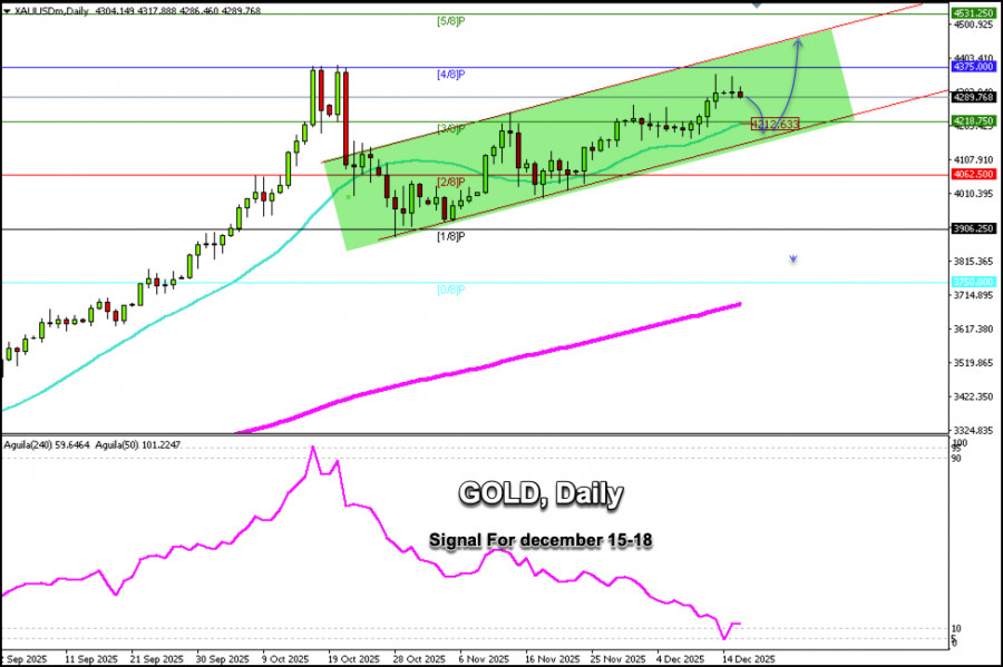 Signaux de trading pour GOLD du 15 au 18 décembre 2025 : vendre en-dessous de $4,350 (21 SMA - 8/8 Murray)