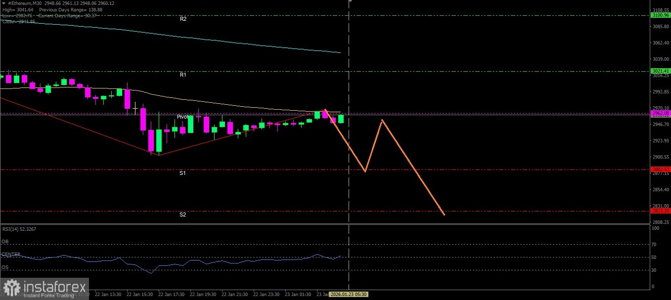 Bias Ekstensi Momentum: bila 2882.53 berhasil ditembus kebawah maka ada potensi Ethereum akan menguji level 2823.20