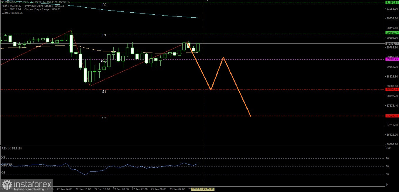 Zona Rawan Tekanan: Jika harga breakdown 89387.45, maka ada potensi tekanan membawa Bitcoin menuju 88396.64
