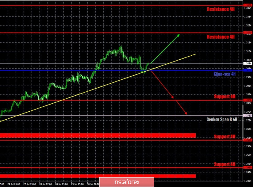 1) Buyers remain the dominant traders in the pound/dollar market, but at the moment there is a correction. Since sellers failed to overcome the Kijun-sen line and the trend line from the first time, formally, long positions with the goal of the resistance level of 1.3240 are now relevant. However, we believe that the bears will attack again tomorrow and can overcome these two obstacles. The potential Take Profit is about 170 points.