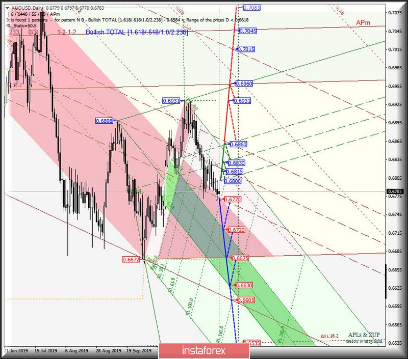 लघु ऑपरेशनल स्केल फोर्क्स की 1/2 मध्यान रेखा चैनल की निचली सीमा के टूटने का समर्थन स्तर - 0.6770 ऑस्ट्रेलियाई डॉलर के निचले स्तर को संतुलन के न्यूनतम चालन क्षेत्र (0.6720 - 0.6675 - 0.6630) पर जारी रखते हैं।