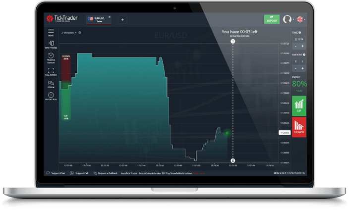 InstaTick Trader provides an opportunity to make deals with the help of large-scale clear charts and web solutions created specifically for tick trades. You do not need to download and install the platform to your computer, which means you will have access to the market wherever you are.