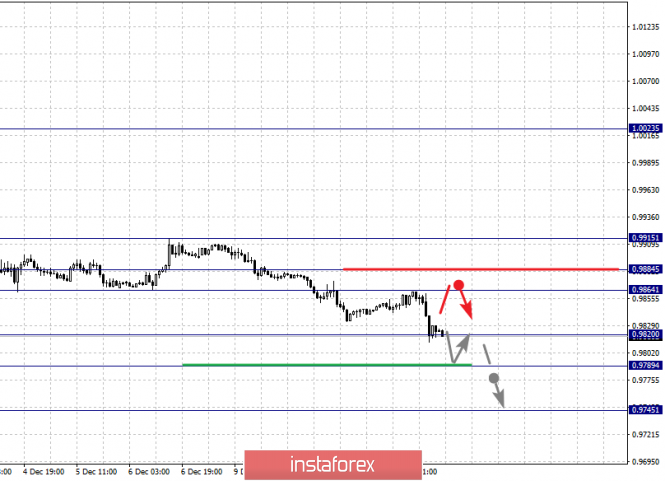 Short-term upward movement is possibly in the range of 0.9864 - 0.9884. The breakdown of the latter value will lead to in-depth movement. Here, the target is 0.9915. This level is a key support for the downward structure of November 29.