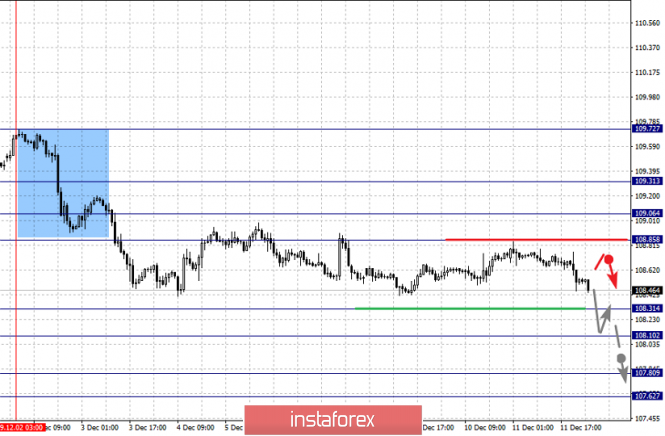 For the dollar / yen pair, the key levels on the scale are : 109.31, 109.06, 108.85, 108.58, 108.31, 108.10, 107.80 and 107.62. Here, we are following the descending structure of December 2. Short-term movement to the bottom is possibly in the range 108.31 - 108.10. The breakdown of the last value will lead to a pronounced movement. Here, the goal is 107.80. For the potential value for the bottom, we consider the level of 107.62. Upon reaching which, we expect consolidation, as well as a rollback to the top.