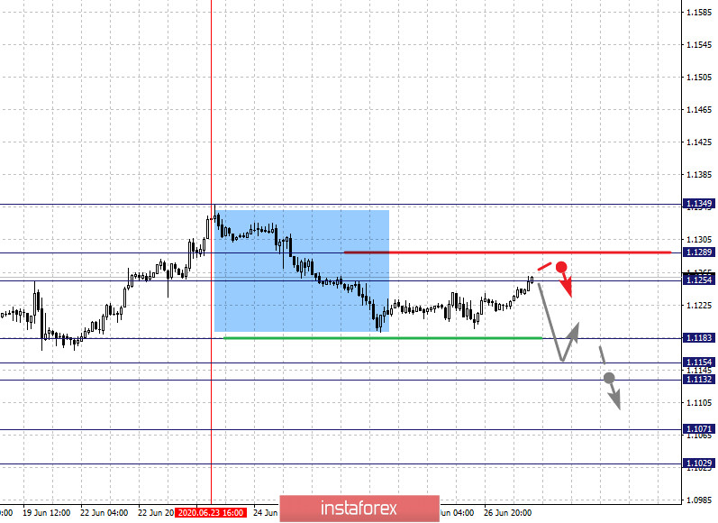 Per quanto riguardo la coppia Euro/Dollaro, i livelli fondamentali sul grafico H1 sono: 1.1289, 1.1254, 1.1183, 1.1154, 1.1132, 1.1071 e 1.1029. Stiamo seguendo la formazione del modello discendente del 23 giugno, al momento il prezzo si sta correggendo. Prevediamo un continuo movimento al ribasso dopo la rottura di 1.1183, in questo caso l'obiettivo è 1.1154. Il prezzo che passa l'intervallo di rumore 1.1154 - 1.1132 porterà allo sviluppo di un pronunciato movimento al ribasso, l'obiettivo è 1.1071. Riteniamo che il livello 1.1029 sia un valore potenziale per il bottom; al raggiungimento di questo livello, prevediamo un pullback al rialzo.