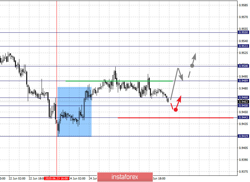 È possibile un movimento consolidato nell'intervallo compreso tra 0.9468 - 0.9458. La rottura di quest'ultimo valore porterà a una correzione più profonda, l'obiettivo è 0.9443. Questo livello è il supporto chiave per il top.