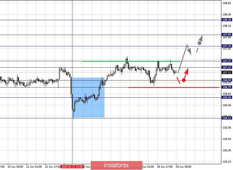 Per quanto riguardo la coppia Euro/Dollaro, il prezzo è vicino alla cancellazione del modello discendente del 23 giugno, per la quale è necessaria la rottura di 1.1290. Per la coppia Sterlina/Dollaro, stiamo osservando il modello discendente del 24 giugno, il livello di 1.2475 è il supporto chiave per il bottom. Per la coppia Dollaro/Franco, stiamo seguendo la formazione delle condizioni iniziali per il top del 23 giugno, il livello di 0.9508 è la resistenza chiave. Per la coppia Dollaro/Yen, lo sviluppo della tendenza al rialzo del 23 giugno dovrebbe continuare dopo che il prezzo avrà superato l'intervallo di rumore 107.23 - 107.37. Per la coppia Euro/Yen, l'intervallo 119.91 - 119.67 è il supporto chiave per il top del 22 giugno. Per la coppia Sterlina/Yen, i prossimi obiettivi sono stati determinati dal modello discendente del 23 giugno, il livello di resistenza chiave 132.03, il livello di supporto chiave 133.08.