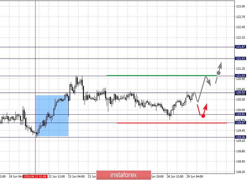 È possibile un movimento al ribasso a breve termine nell'intervallo compreso tra 119.91 - 119.67. Questo intervallo è il supporto chiave per il top. Il suo passaggio favorirà lo sviluppo del modello discendente, in questo caso il primo potenziale obiettivo è 119.26.