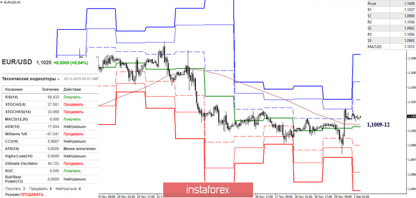 Төменгі таймдарда көтеруге ойыншылар 1,1009-12 (орталық Пивот деңгейі + апталық ұзақ мерзімді тренд) негізгі қолдау жоғары болып табылады, псондықтан артықшылығы бар. Қазір жұптың төмендеу түзету аймағында орналасқан, оның дамуы техникалық индикаторлар көпшілік дауыспен қолдау көрсететін жағдайлар бәсеңдеткіш факторлар болып табылады. Бүгін күннің ішінде классикалық Пивот-деңгейінің 1,1037 – 1,1056 – 1,1084 кедергілері көтерілуге бағдар ретінде көрінуі мүмкін. Қолдау ретінде бекітілген жағдайда (1,109-12) қарашаның минималды экстремумын жаңарту (1,0981) негізгі мәнге ие болады, одан әрі 1,0962 (S2) – 1,0943 (S3) қолдау көрсетуі мүмкін.