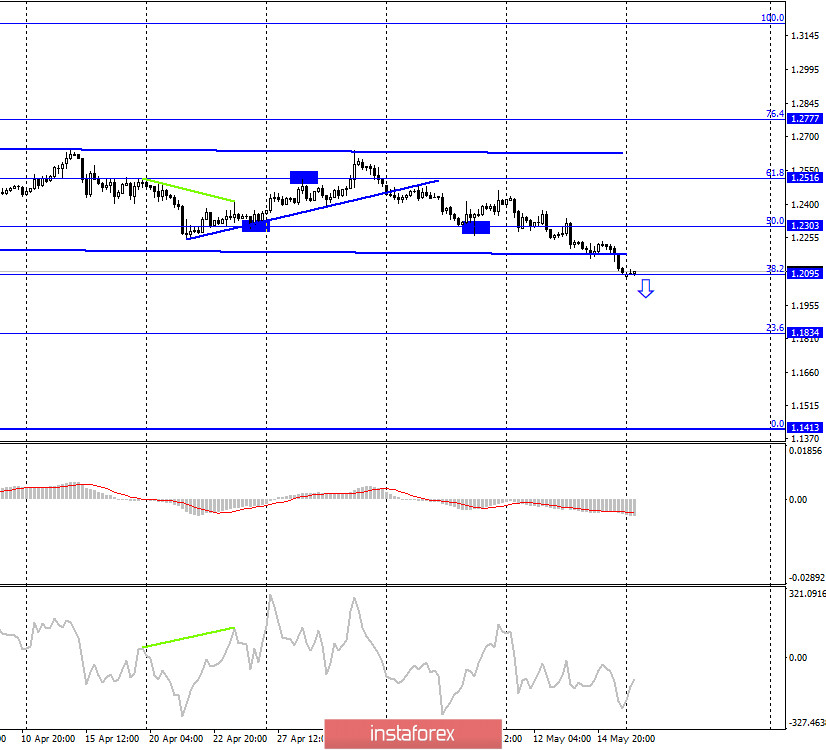 Күндізгі кестеде жұптың котировкалары 38,2% - 1,2215 түзету деңгейінде бекітілді. Осылайша, құлау процесі Фибо деңгейі 23,6% - 1,1908 бағытында жалғасуы мүмкін, ал бұл график - трейдерлерге котировкалардың одан әрі төмендеуін күтуге мүмкіндік беретін үшінші кесте.