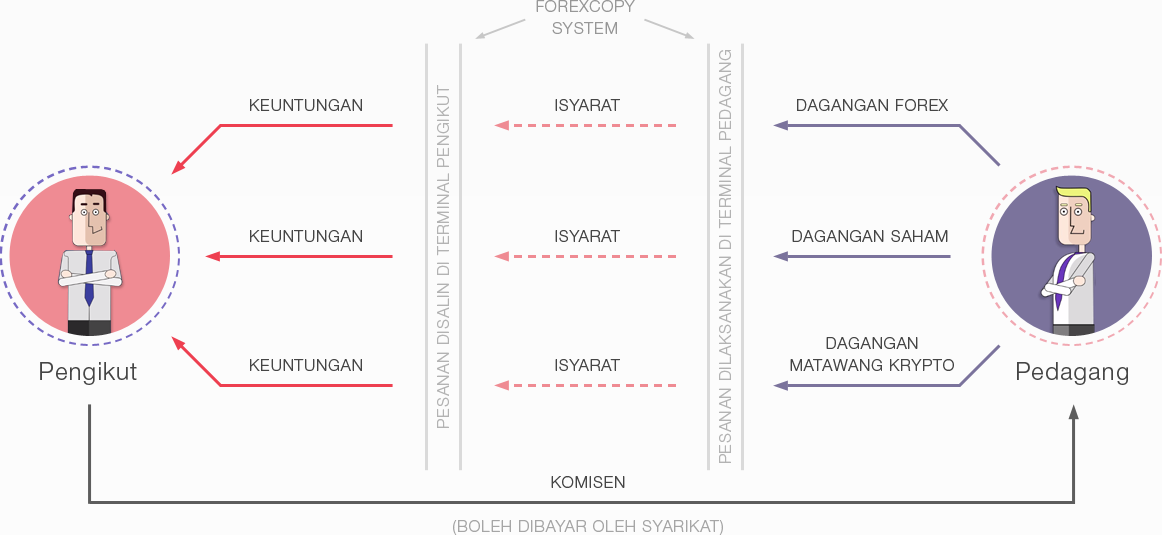 Anda boleh mendaftar dalam sistem ForexCopy sebagai Pedagang atau Pengikut.
