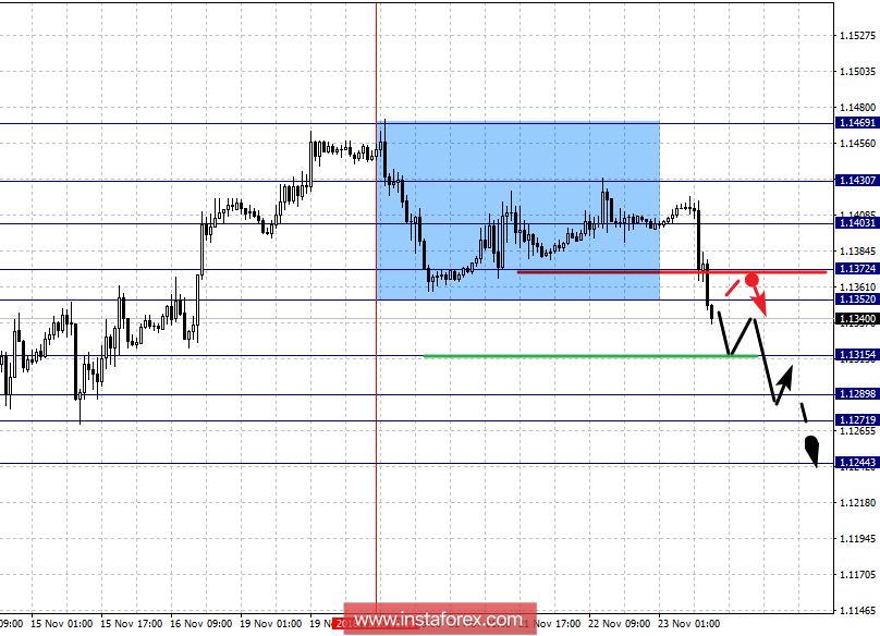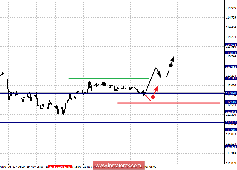 По паре Евро/Доллар ожидаем движение к уровню 1.1315. По паре Фунт/Доллар цена оформила локальную структуру для верха от 21 ноября. По паре Доллар/Франк выраженных начальных условий для верха ожидаем до уровня 1.0013. По паре Доллар/Иена цена формирует потенциал для верха от 20 ноября. По паре Евро/Иена ситуация находится в равновесном состоянии, разрешения которой ожидаем после пробоя 127.95. По паре Фунт/Иена цена находится в корректировочной зоне от нисходящей структуры и формирует потенциал для верха от 20 ноября.