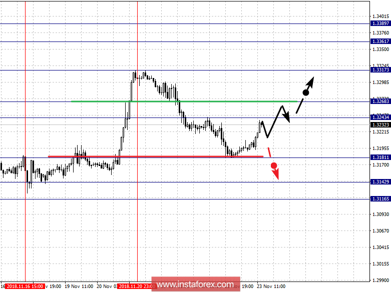 Краткосрочное восходящее движение возможно в коридоре 1.3243 – 1.3268, пробой последнего значения будет располагать к развитию восходящей тенденции и в данном случае первая цель – 1.3317, этот уровень является ключевым сопротивлением для последующего развития восходящей структуры в масштабе Н1.
