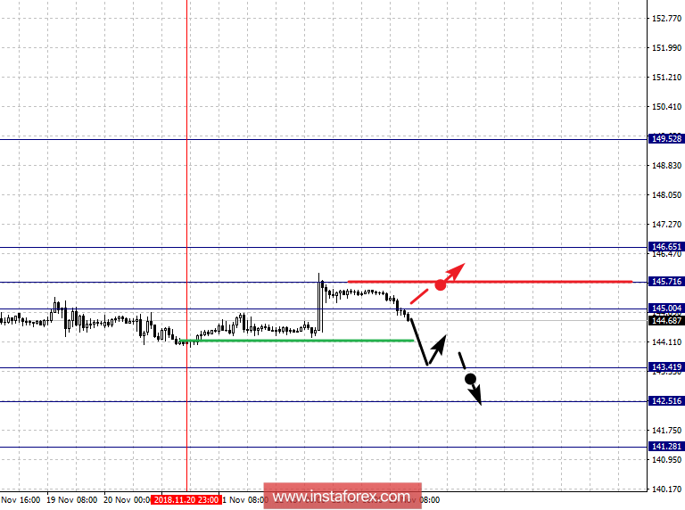 Краткосрочное восходящее движение возможно в коридоре 145.00 – 145.71, пробой последнего значения приведет к затяжной коррекции, здесь цель – 146.65, этот уровень является ключевой поддержкой для нисходящего движения.