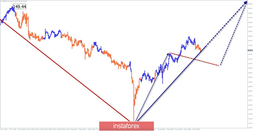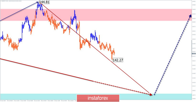 С 25 января цена снижается, образуя нисходящую волну мелкого масштаба. В конструкции более крупного ТФ участок завершает скрытую коррекцию.