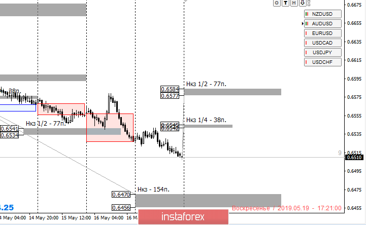 Нисходящий тренд настолько силен, что искать возможности для покупок можно будет только, если произойдет дневное поглощение и американская сессия закроется выше пятничного максимума. Данная модель будет являться отправной точкой в формировании глубокой коррекционной модели, следующей целью которой станет НКЗ 1/2 0.6584-0.6577. Пока пара будет торговаться ниже указанной зоны, разворота медвежьего тренда не будет.