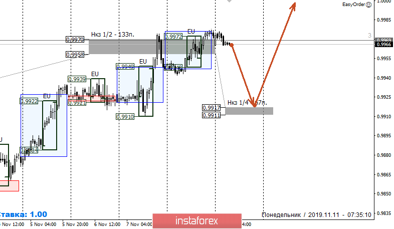 Сегодня ближайшей поддержкой выступает НКЗ 1/4 0.9917-0.9911. Тест этой зоны даст возможность для входа в покупку после формирования паттерна поглощения. Нисходящее движение является коррекционным, поэтому рассматривать продажи не рекомендуется.