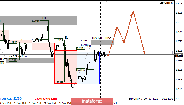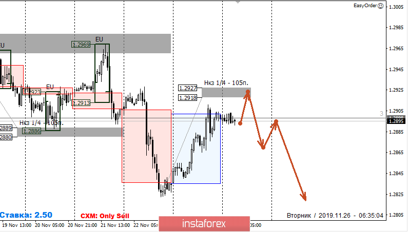 Сегодня пара торгуется вблизи зоны сопротивления НКЗ 1/4 1.2927-1.2918. Если тест этой зоны приведет к росту предложения и сформируется паттерн "ложный пробой" вчерашнего максимума, то это станет идеальным местом для продажи инструмента. Первой целью снижения является минимум прошлой недели, где определится судьба среднесрочного флета.