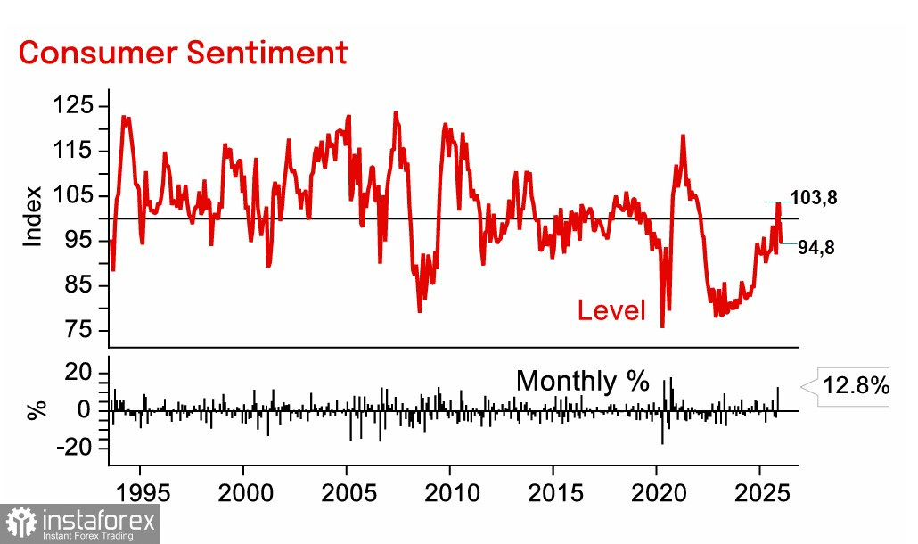 Потребительские настроения в Австралии резко выросли в ноябре на 12.8% Такой сильный рост сложно объяснить какой-то одной причиной, поэтому было любопытно посмотреть, сохранится ли он в декабре, но в любом случае рост потребительских настроений обычно означает и рост потребительских расходов, то есть свидетельствует об устойчивости экономического роста. Как оказалось, не все так просто, в декабре случился откат вниз на 9% до 94.8п., общий тренд остается позитивным.