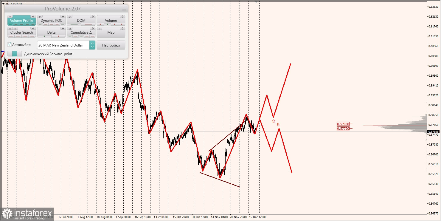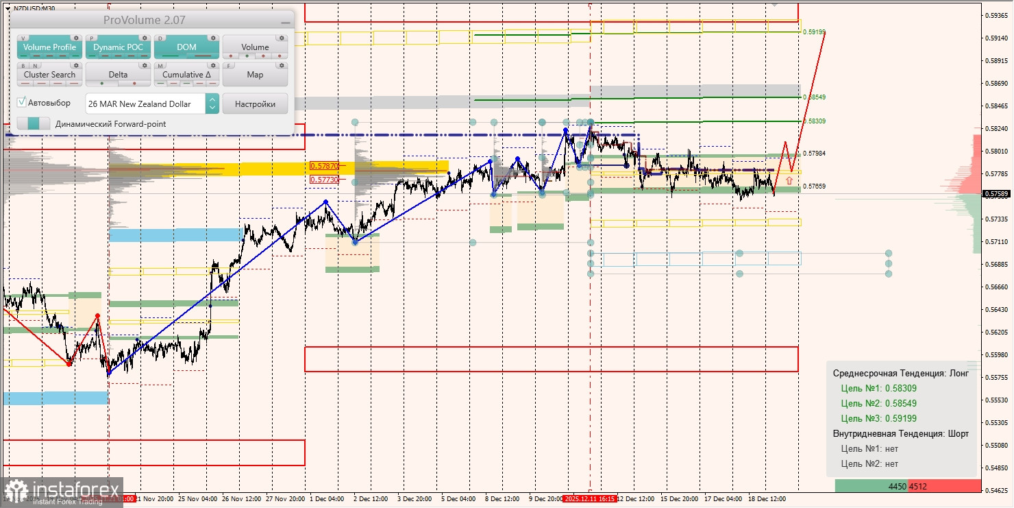 Среднесрочная тенденция: в лонг. Максимальное скопление объемов среднесрочной тенденции расположено в диапазоне, по котировкам0.57730-0.57870. В настоящий момент по паре совершаются инвестиционные операции ниже указанного диапазона, что говорит о слабости покупателей.