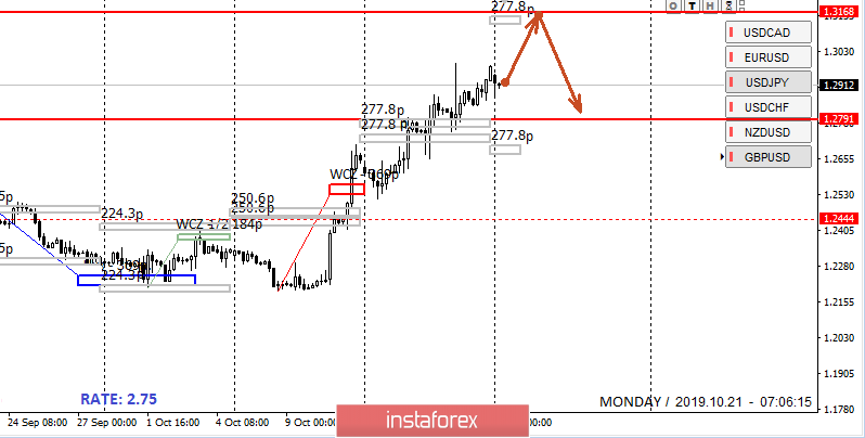 An alternative model will be developed if growth does not stop and none of the minor control zones is broken. In this case, a significant monthly extremum test will be required. The nearest high was formed in May of this year and is at the level of 1.3169.
