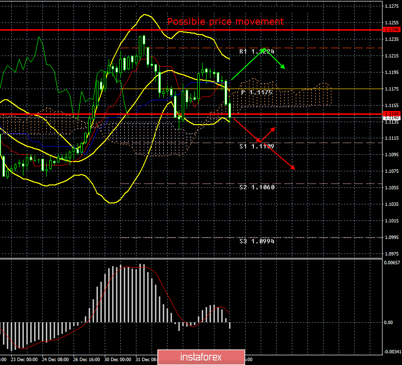 In the European Union, a report on retail sales in November was published today. Unexpectedly for many, this indicator showed an increase of 1.0% in monthly terms and 2.2% in annual terms. Predicted values were much lower. Pleased with the preliminary value of the consumer price index for December in the European Union, which fully coincided with experts' forecasts and amounted to 1.3% YOY. However, even at the time of publication of these data, the euro was no longer in demand among traders. Why? Because retail sales are not in themselves a strong indicator of the state of the economy. Because inflation coincided with the forecast and at the same time remains at a fairly low level. Because yesterday's indexes of business activity in the US manufacturing sector, which showed a positive trend, were completely ignored. Thus, we believe the resumption of the downward movement is absolutely justified.