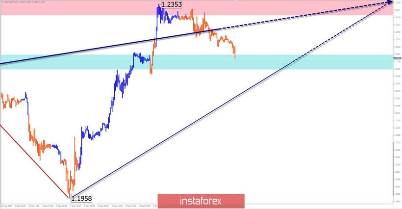 Kierunek krótkoterminowego trendu angielskiej waluty od końca lipca jest kształtowany przez rosnącą rozciągniętą płaszczyznę. Od 3 września rozwija się ostatni etap ruchu. Cena osiągnęła minimalny poziom wydłużenia, przy którym ukończenie całej fali jest już możliwe.
