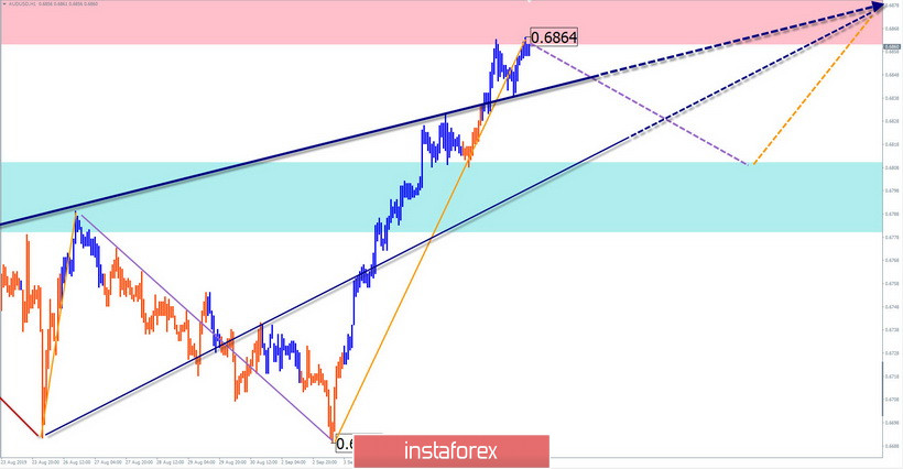 Na wykresie aussie fala wzrostowa nadal się rozwija. Jej struktura do ostatniego etapu była uformowana jako płaszczyzna standardowa, jednak ostateczny wzrost 3 września zmienił ją w rozciągniętą. Cena osiągnęła silny opór.