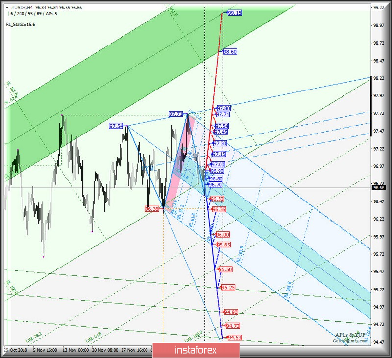 Тенденция развития движения индекса доллара #USDX c 20 декабря 2018 г. будет обусловлено отработкой границ зоны равновесия (96.50 <-> 96.70 <-> 96.90) вил операционного масштаба Minuette.