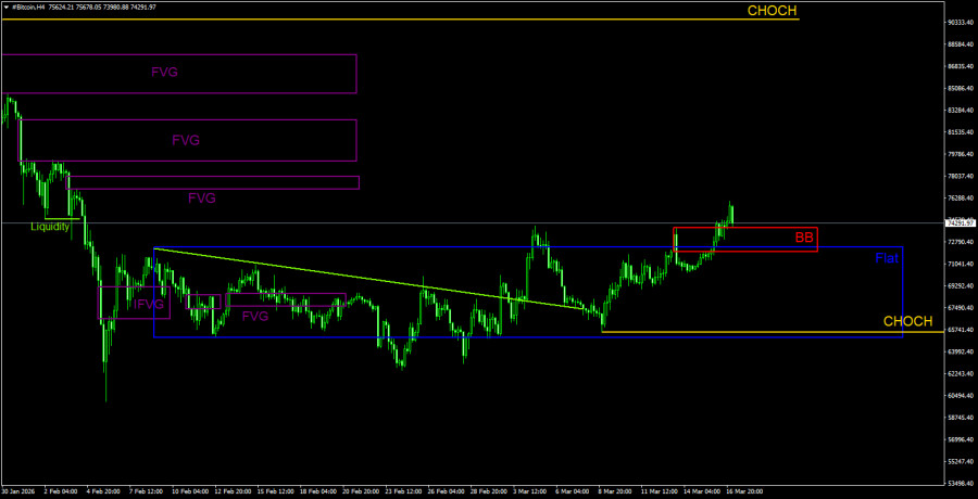 Торговые рекомендации по Биткоину(Bitcoin) на 17 марта по системе ICT.
