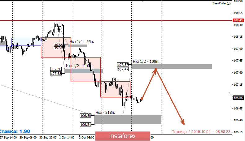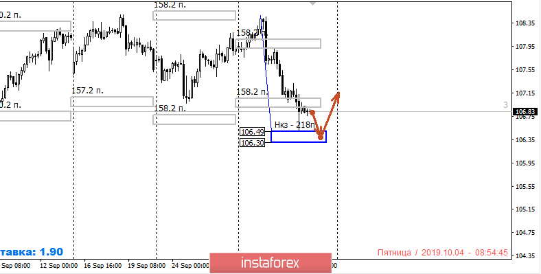 Сегодняшний план состоит в том, чтобы найти выгодную цену на покупку инструмента, так как пара торгуется ниже среднего недельного хода. Самая выгодная цена находится в пределах недельной КЗ 106.50-10631. Формирование паттерна "ложный пробой" вчерашнего минимума позволит войти в коррекционные покупки.
