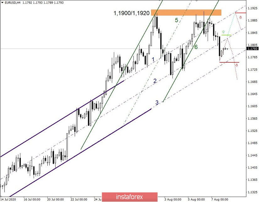 Альтернативный сценарий рассматривает изменение направления канала с восходящего на нисходящий. В этом исходе основную роль играет трендовая линия 3 (район 1,1740/1,750), так как в случае ее пробоя трейдеры получат сигнал на продажу.