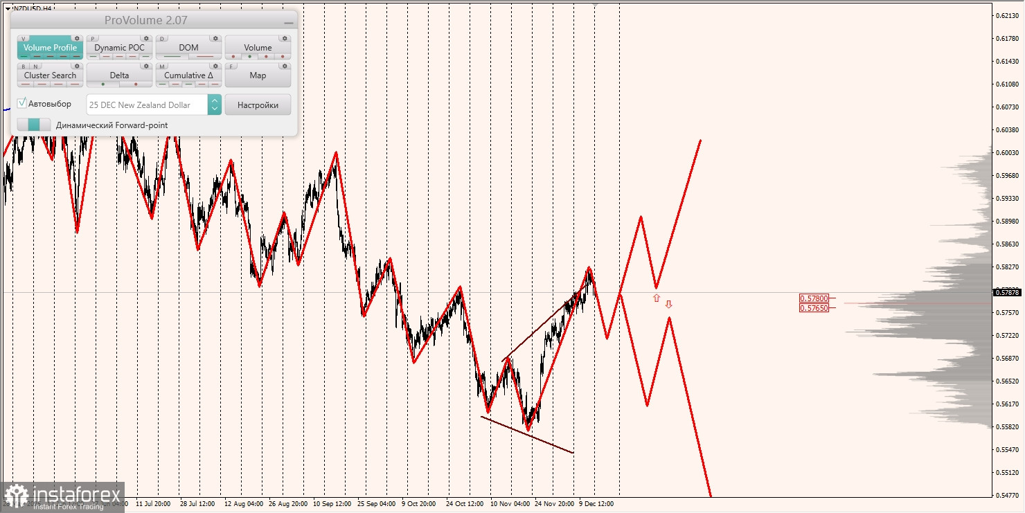 Долгосрочная тенденция: временная неопределённость. Максимальное скопление объемов текущего контракта расположено в диапазоне по котировкам0.57650-0.57800. В настоящий момент по паре совершаются инвестиционные операции выше указанного диапазона, что говорит о силе покупателей.