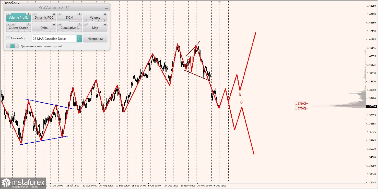 Долгосрочная тенденция: в шорт. Максимальное скопление объемов текущего контракта расположено в диапазоне по котировкам 1.37500-1.37800. В настоящий момент по паре совершаются инвестиционные операции внутри указанного диапазона, что говорит о временной неопределённости.