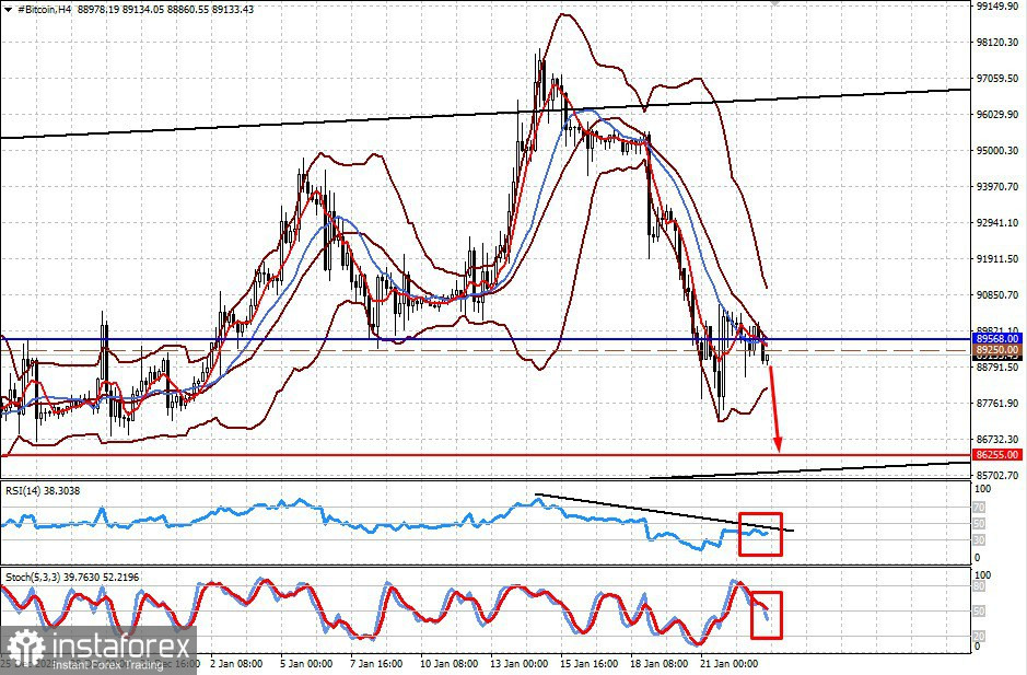 Криптовалюта упала ниже уровня 89568.00 и может продолжить снижение на волне падения спроса на криптовалюты из-за невнятных перспектив, оставаясь под прессингом геополитической напряженности. После локального восстановления биткоин может снова возобновить снижение и упасть к 86255.00. Уровнем для его продажи может служить отметка 89250.00.