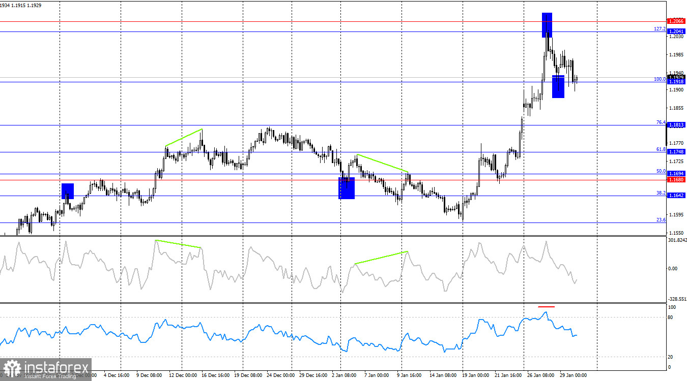 В четверг новостей на валютном рынке было крайне мало. Впервые с начала 2026 года. Дональд Трамп приучил трейдеров в новом году, что новости будут поступать каждый день, а он не намерен свои планы откладывать в долгий ящик. Поэтому в ближайшее время против Канады и Южной Кореи могут быть повышены пошлины, по Ирану – нанесен авиаудар в поддержку протестующих против правительства, а вопрос с Гренландией разрешился, но никто не понимает как. На мой взгляд, гренландский вопрос тоже остается актуальным, так как в данное время совершенно непонятно, какого мнения придерживается Евросоюз и Дания в отношении договоренностей Трампа и Рютте. Также на этой неделе состоялось заседание ФРС, в ходе которого не было принято никаких важных решений и не было сделано никаких важных заявлений. Так как в последние дни новостей поступает немного, трейдеры предпочитаются отсиживаться «на заборе» и заниматься коррекцией. Сегодня экономических отчетов выйдет достаточно много, в основном в Евросоюзе. Но рынок ждет новостей от Трампа.
