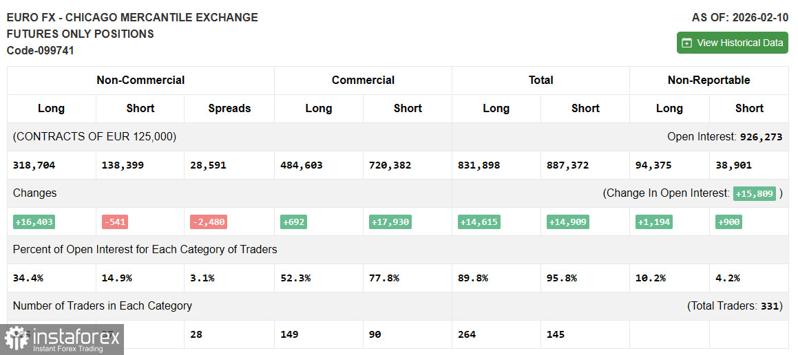 Прежде чем говорить о дальнейших перспективах движения EUR/USD давайте посмотрим, что происходило на фьючерсном рынке и как изменились позиции Commitment of Traders. В COT-отчете (Commitment of Traders) за 10 февраля наблюдался резкий рост длинных позиций и сокращение коротких. Очевидно, что более чем правильная политика Европейского центрального банка в отношении процентных ставок позволяет ставить на дальнейшее укрепление европейской валюты в среднесрочной перспективе, чем и пользуются трейдеры. В COT-отчете указано, что длинные некоммерческие позиции выросли на 16 403 до уровня 318 704, в то время как короткие некоммерческие позиции снизились на 541 до уровня 138 399. В результате спрэд между длинными и короткими позициями сократился на 2 480.