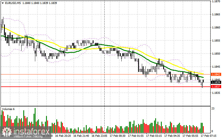 Вчера так и не было образовано подходящих точек входа в рынок. Давайте посмотрим на 5-минутный график и разберемся с тем, что там произошло. В своем утреннем прогнозе я обращал внимание на уровень 1.1883 и планировал от него принимать решения по входу в рынок. Из-за низкой волатильности евро до движения в район 1.1883 дело так и не дошло, так что я остался без сделок. Во второй половине дня история повторилась.