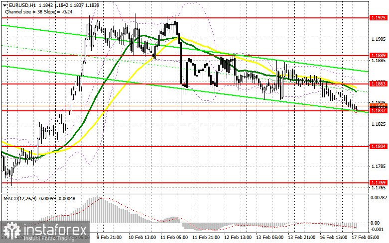 Сегодня в первой половине дня внимание участников рынка будет приковано к данным по индексу потребительских цен Германии, индексу настроений в деловой среде Германии от института ZEW и индексу настроений в деловой среде еврозоны. В случае слабой статистики давление на евро только увеличится, чем можно будет воспользоваться. Однако, чтобы не упустить рынок, покупателям необходимо проявлять себя уже в районе ближайшей поддержки 1.1837. Действовать там планирую только после формирования ложного пробоя, что даст точку входа в рынок с целью роста евро к сопротивлению 1.1863, образованному по итогам вчерашнего дня. Прорыв и обратный тест этого диапазона станут подтверждением правильных действий на покупку в расчете на более крупный рост пары к 1.1889, что вернет по паре бычий рынок. Самой дальней целью выступит область 1.1925, где буду фиксировать прибыль. При варианте снижения EUR/USD и отсутствия активности в районе 1.1837, давление на пару может серьезно увеличиться. Продавцы наверняка сумеют дотянуться до более интересного уровня 1.1804. Лишь формирование там ложного пробоя будет подходящим условием на покупку евро. Открывать длинные позиции сразу на отскок будут от 1.1769 с целью восходящей коррекции в 30-35 пунктов внутри дня.