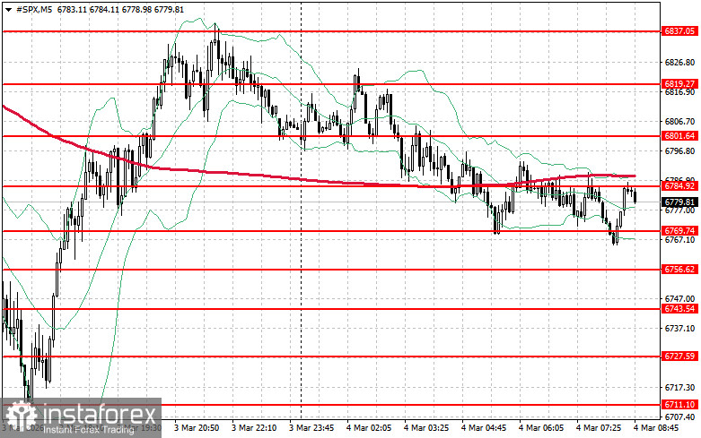 Что касается технической картины S&P500, то основная задача покупателей на сегодня будет заключаться в преодолении ближайшего сопротивления $6784. Это поможет показать рост, а также откроет возможность к рывку на новый уровень $6801. Не менее приоритетной задачей быков будет и контроль над $6819, что укрепит позиции покупателей. В случае движения вниз на фоне снижения спроса аппетита к риску, покупатели просто обязаны заявить о себе в районе $6769. Пробой быстро столкнет торговый инструмент назад на $6756 и откроет дорогу к $6743.