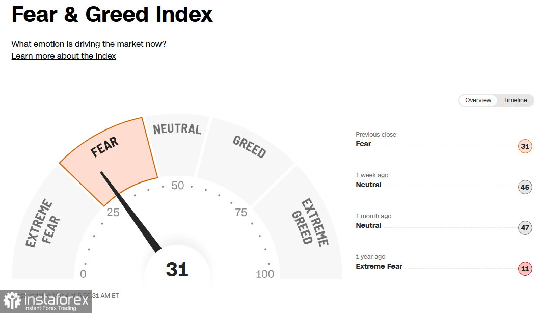 Индекс «страха и жадности» инвесторов остается в зоне «страха» на отметке 31 (из 100)