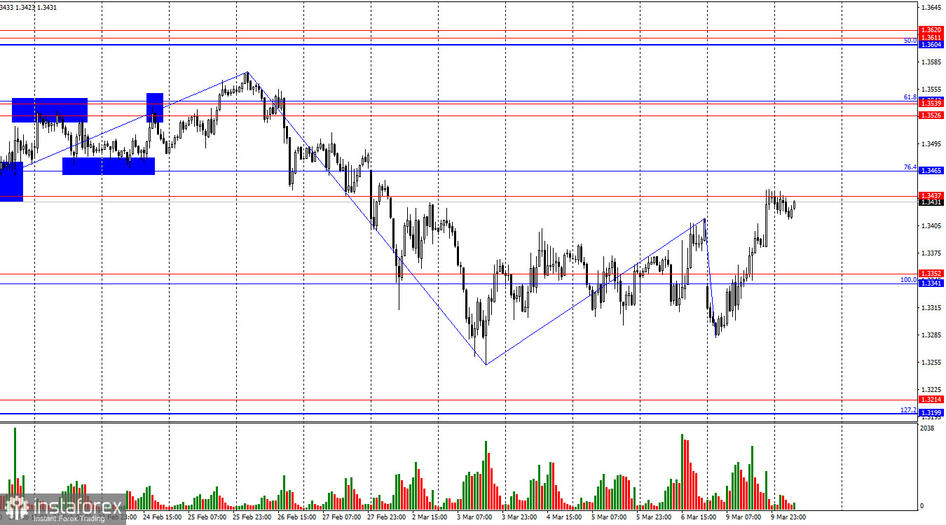 Информационный фон в понедельник фактически отсутствовал, если мы говорим об экономике. В последние недели рынок никакого внимания не обращал на экономические данные, и даже в прошлую пятницу прошел мимо важной статистики по рынку труда и безработице в США. Однако подобная статистика, в отличие от геополитики, не имеет срока годности. Трейдеры не могут каждый день покупать доллар только потому, что война в Иране продолжается. Для новых покупок доллара нужны новые События. Зато состояние американского рынка труда, который по-прежнему требует стимулирования со стороны ФРС, может оказать долгосрочное давление на доллар. Если цены на нефть удастся стабилизировать, а войну в Иране завершить, доллар потеряет ключевой фактор поддержки, а трейдеры разом припомнят и о падении ВВП в четвертом квартале, и о слабости рынка труда, и о росте безработицы в США. Также рынок вернется к исследованию влияния торговой войны Трампа, что тоже является негативным фактором для американской валюты. Для быков теперь главное, чтобы война в Иране не вспыхнула с новой силой. Если этого не случится, британец будет понемногу восстанавливаться, а на всех старших графиках сохраняется «бычий» тренд. Таким образом, в разрезе всего 2026 года я по-прежнему настроен на покупки.