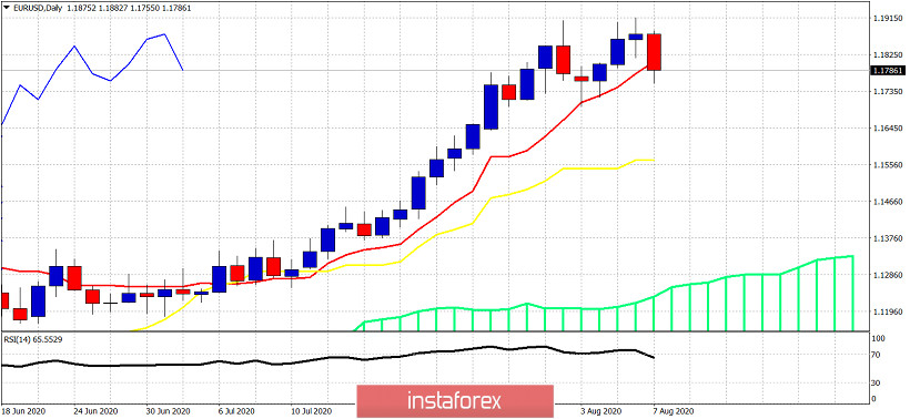 As can be seen in the weekly chart above this weekly candle has same long upper tail as last week's candlestick. This candlestick formation confirms the importance of resistance at 1.19-1.18 area.