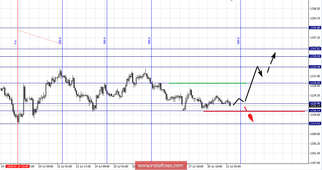 Según el oro, los niveles clave en la escala de H1 son: 1250.88, 1242.62, 1239.59, 1235.48, 1229.05, 1220.96, 1218.14 y 1213.01. Aquí, seguimos la formación de la estructura ascendente del 19 de julio. Se espera un movimiento ascendente después de la descomposición de 1229.05. Aquí, el primer objetivo es 1235.48 y el desglose de los mismos nos permitir contar con el movimiento al nivel de 1239.59 y en el corredor de 1239.59 - 1242.62 es la consolidación. El valor potencial para la parte superior es el nivel de 1250.88; al alcanzar este nivel, esperamos un retroceso hacia abajo.