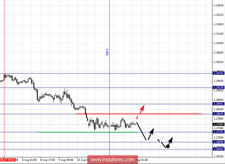 Para el par de divisas libra/dólar, los niveles clave en la escala H1 son: 1.2913, 1.2845, 1.2802, 1.2727, 1.2684 y 1.2655. Aquí, determinamos los objetivos posteriores de la estructura descendente local del 7 de agosto. Se espera la continuación del movimiento bajista después de la ruptura de 1.2727. En este caso, el objetivo es 1.2684 y en el corredor de 1.2684 - 1.2655 es la consolidación del precio, desde este rango, también esperamos un retroceso alcista.