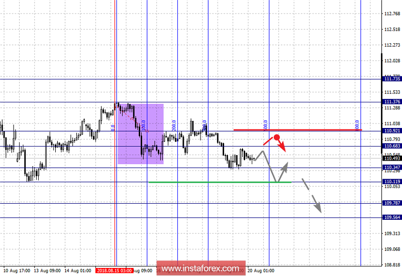 .Para el par USD/JPY, los niveles claves en la escala son: 111.37, 110.92, 110.68, 110.34, 110.11, 109.78 y 109.56. Aquí, el precio llevó al desarrollo de la estructura alcista del 13 de agosto y por el momento, estamos siguiendo el movimiento bajista del 15 de agosto. El movimiento bajista a corto plazo es posible en el rea de 110.34 - 110.11. La ruptura del último valor deber estar acompañada por un movimiento pronunciado hacia el nivel de 109.78. El valor potencial para el piso es el nivel de 109.56. Después de alcanzar este nivel, esperamos la consolidación del precio.